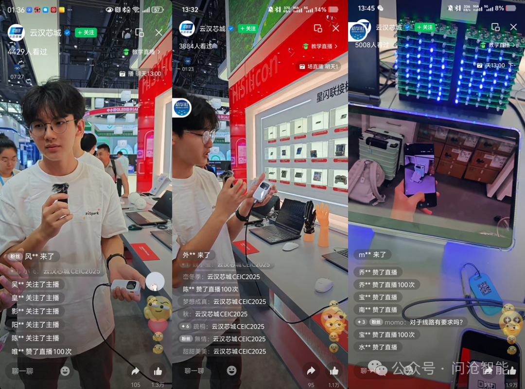 问沧智能与 AIoTCommLab 联合打造的展位前人头攒动,不少行业观众、投资者及媒体驻足咨询,通过产品实操、直播讲解等形式,近距离感受实验室在 AI 与星闪短距通信融合领域的创新成果。产品凭借贴近消费场景、技术落地性强的优势,成为展区的一大亮点。